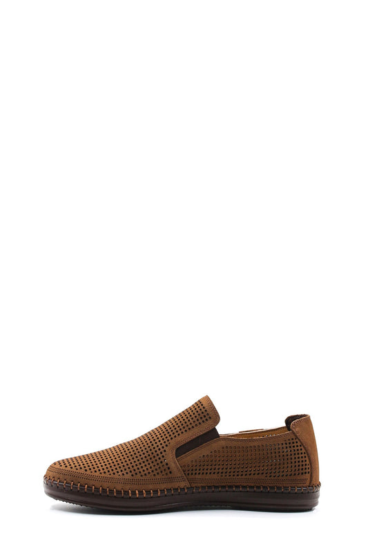 Brown Perforated Slip-On Loafers-Wessi
