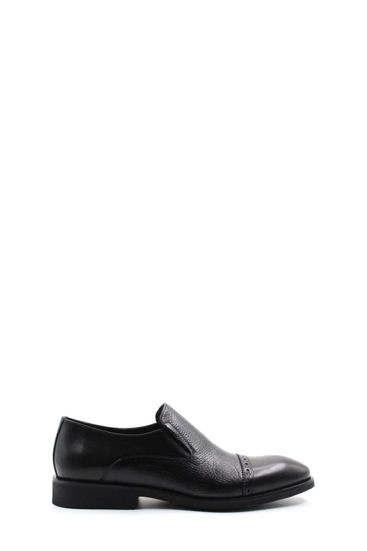 Black Textured Leather Loafers Wessi