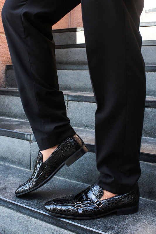 Black Croc-Embossed Double Monk Loafers Wessi