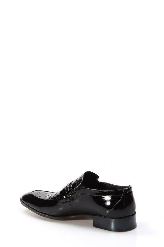 Black Patent Leather Croc-Embossed Loafers Wessi