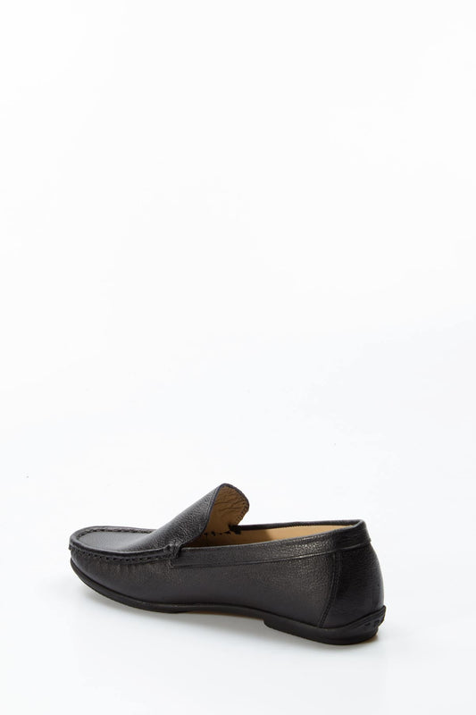 Men's Black Leather Loafers with Moc Toe Stitching