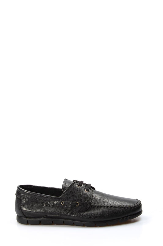 Men's Black Leather Moccasin Loafers with Lace-Up Detail