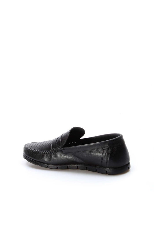 Men's Black Leather Perforated Loafers with Moc Toe