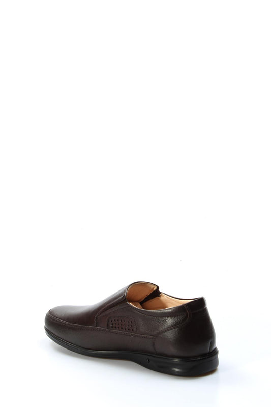 Men's Brown Leather Slip-On Loafers with Perforated Detailing