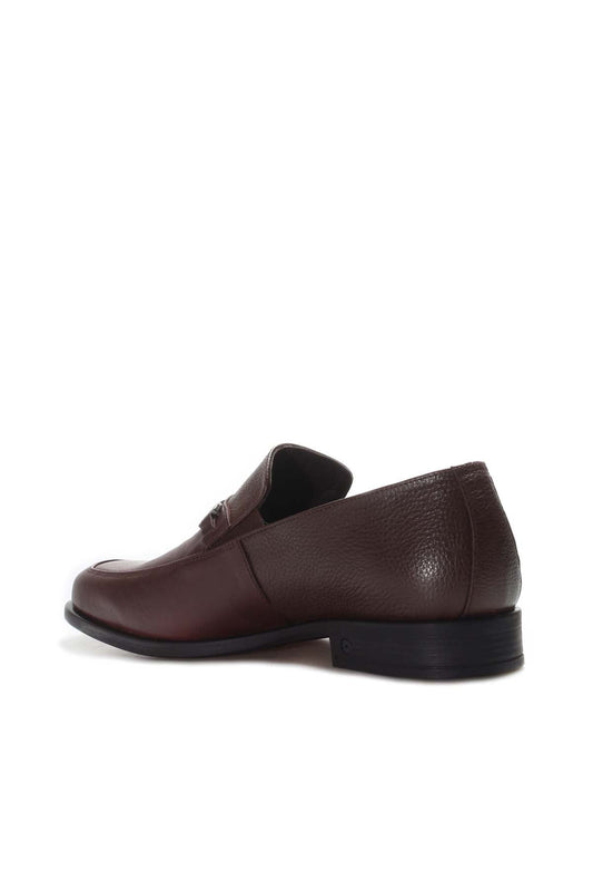 Men's Brown Leather Loafers with Metal Bit Detail and Textured Upper