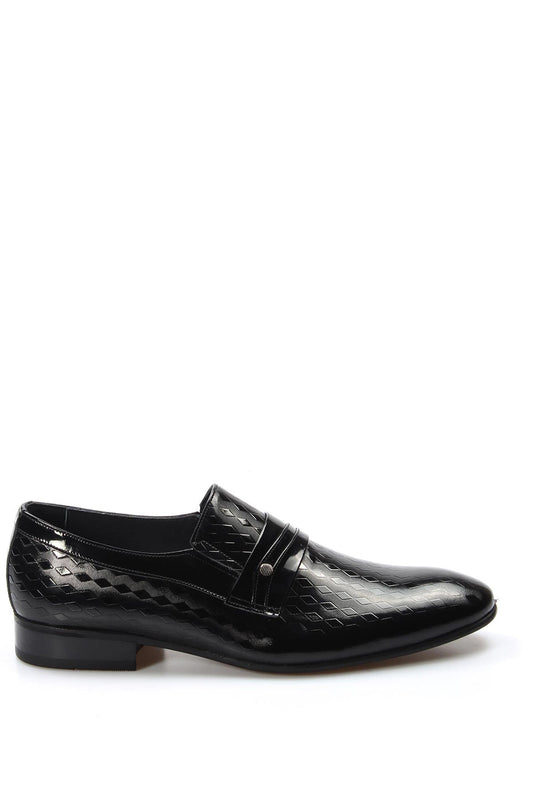 Men's Black Patent Leather Loafers with Geometric Embossed Pattern