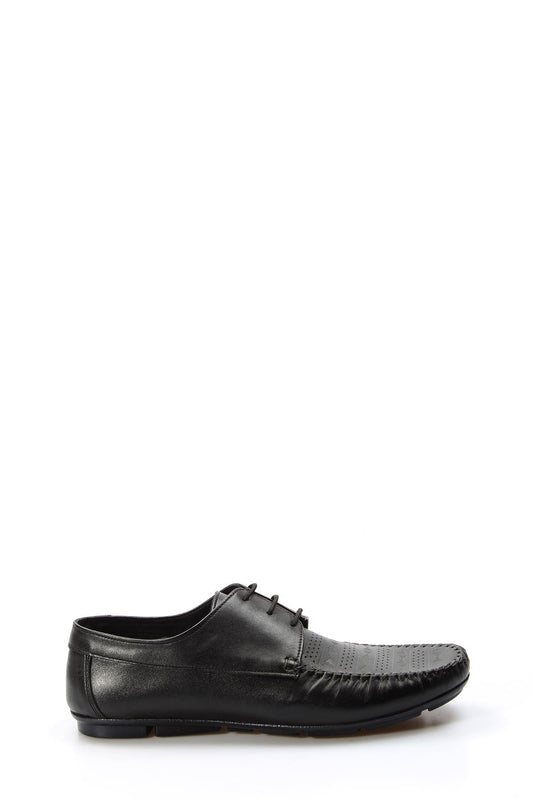 Men's Black Leather Lace-Up Loafers with Perforated Detail