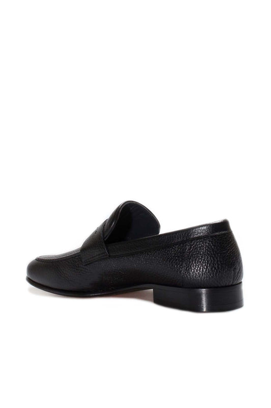 Men's Black Textured Leather Penny Loafers with Moc Toe