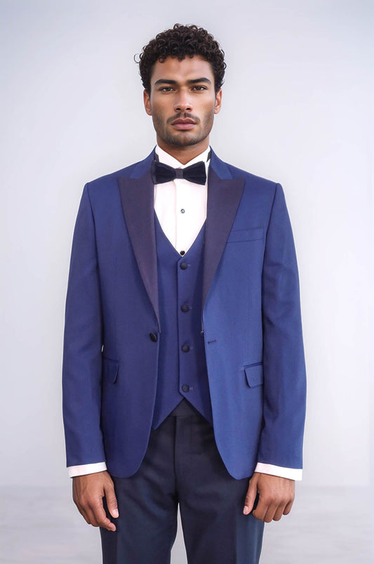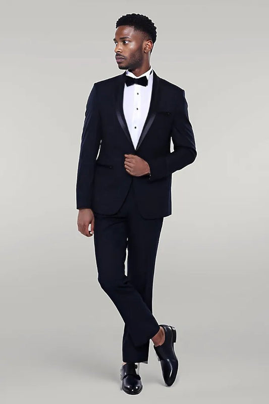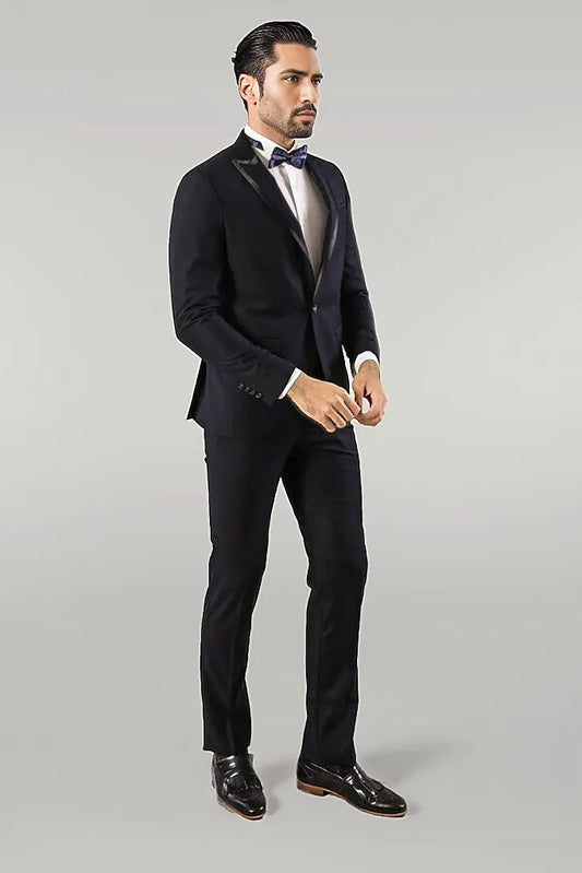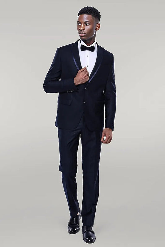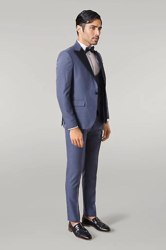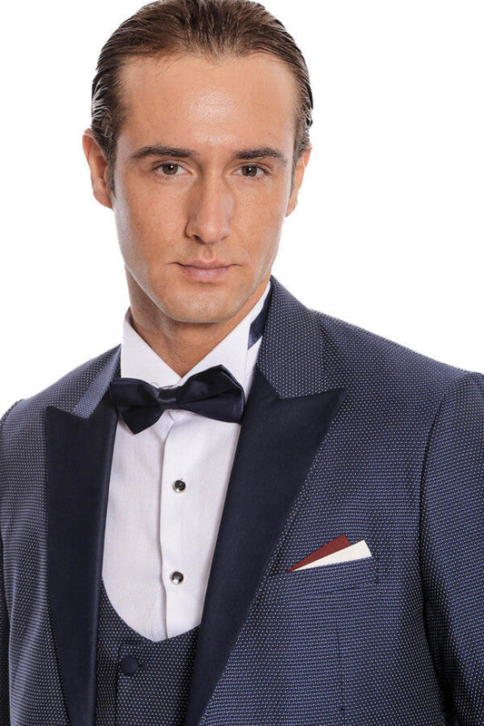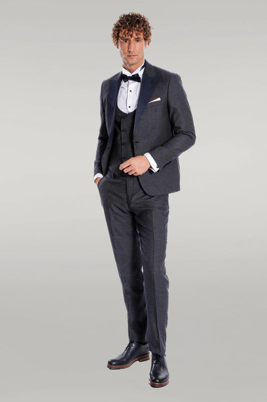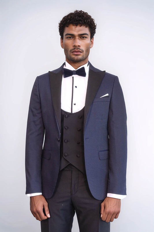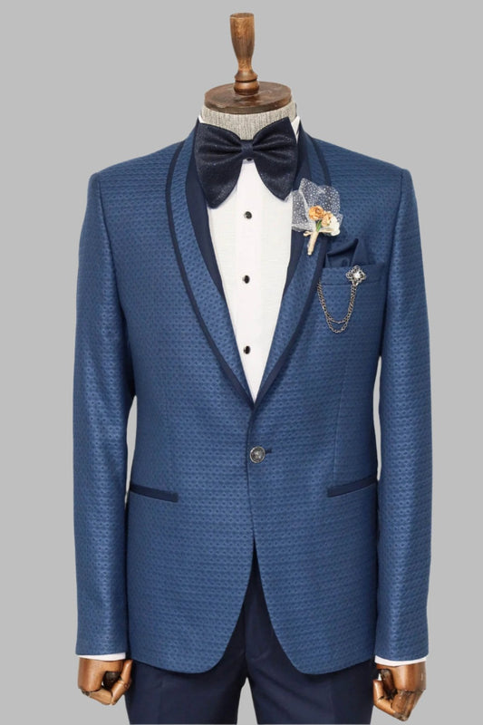 Velvet Lapel Patterned Navy Blue Tuxedo -