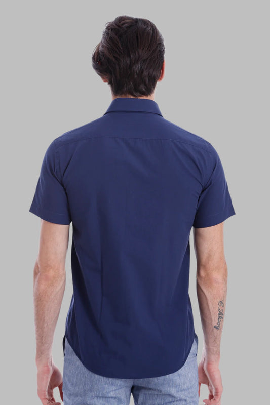 Slim Fit Short Sleeve Poly Cotton Navy Blue Men Shirt