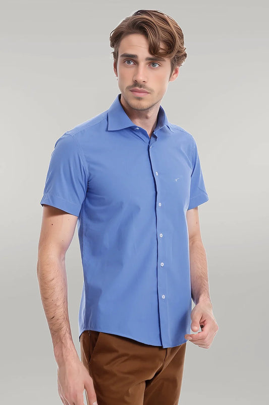 Slim Fit Short Sleeve Poly Cotton Blue Men Shirt