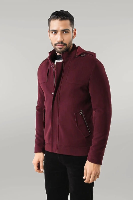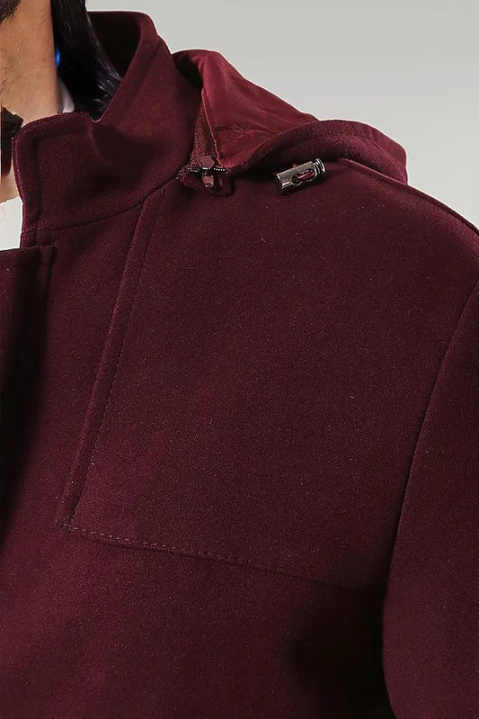 Zippered Sleeve Hooded Burgundy Coat