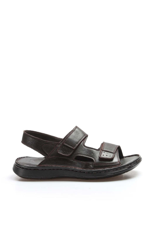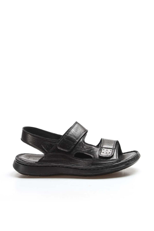 Men's Black Leather Velcro Strap Sandals with Cushioned Sole