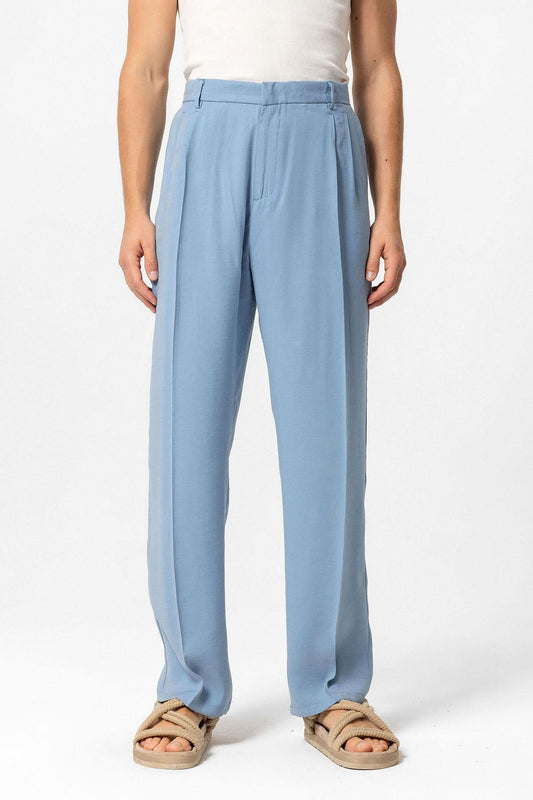Men's Navy Blue High Waist Pleated Carrot Fit Trousers