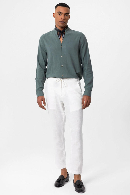 Men's Ecru Regular Fit Mandarin Collar Shirt -