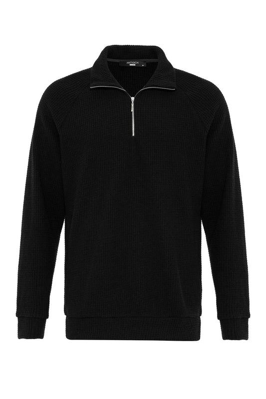 Men's Black Half Zip Stand Collar Sweater