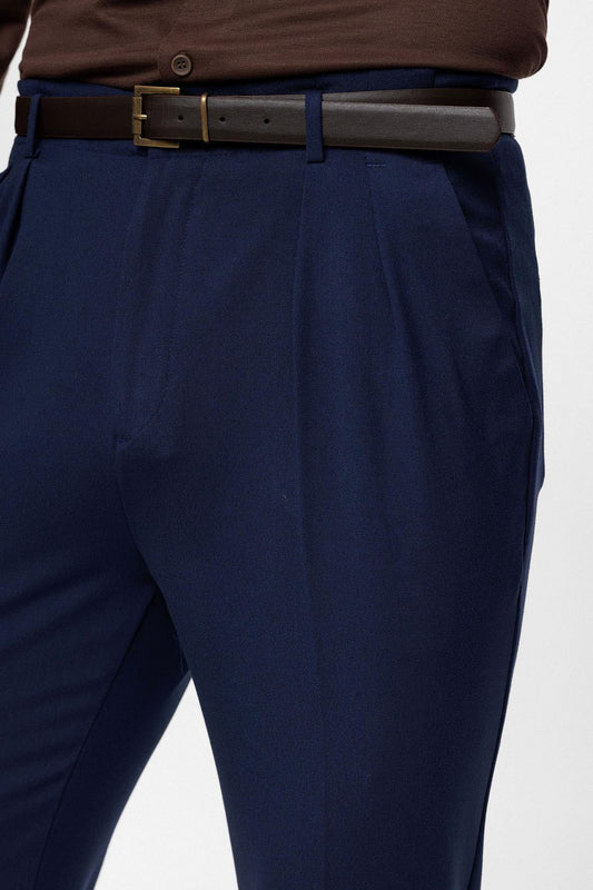 Men's Light Navy Blue High Waist Belted Trousers