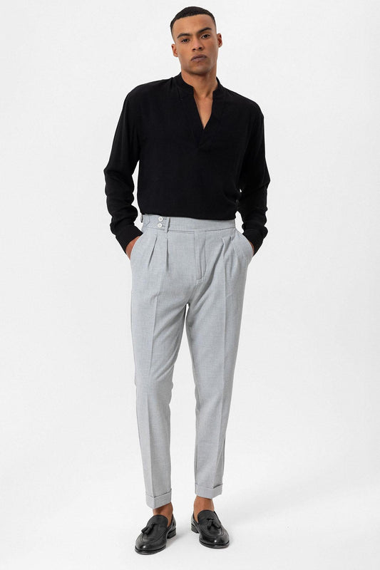 Men's Black High Waist Button Closure Trousers