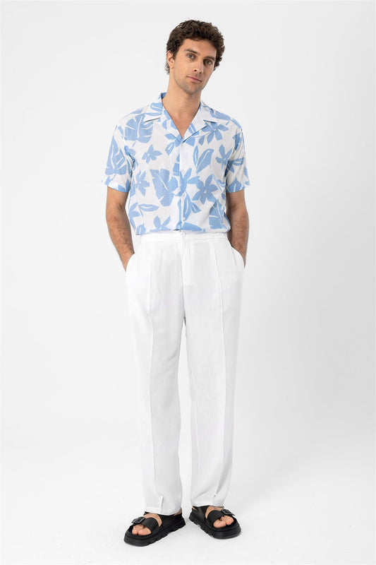Men's White High Waist Muslin Fabric Trousers with Drawstring Waist