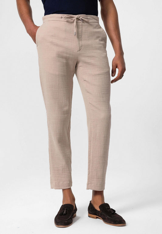 Men's Beige Regular Fit Drawstring Pants