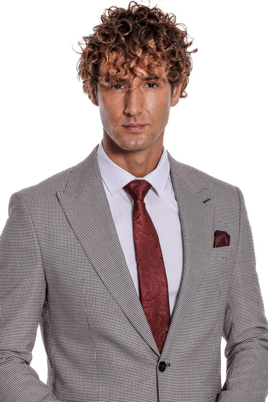 Brown Navy Burgundy Striped Slim-Fit Coat