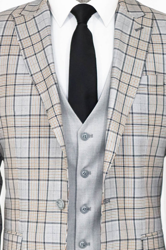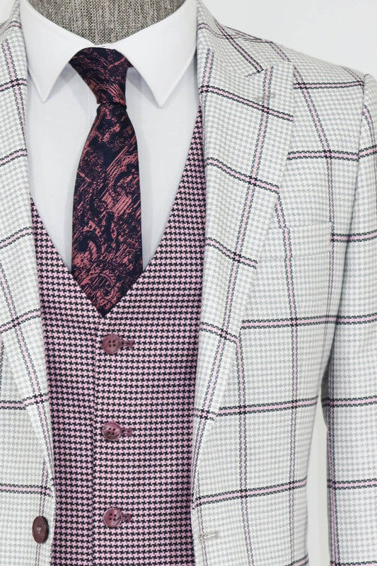 Checked Patterned Vested Light Grey Men Suit and Shirt Combination -Regular price $1,273.99Regular priceUnit price / per-