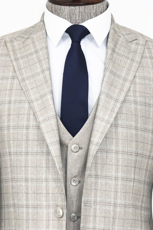 Checked Slim Fit Cream Men Suit and Shirt Combination-Regular price $964.99Regular priceUnit price / per-
