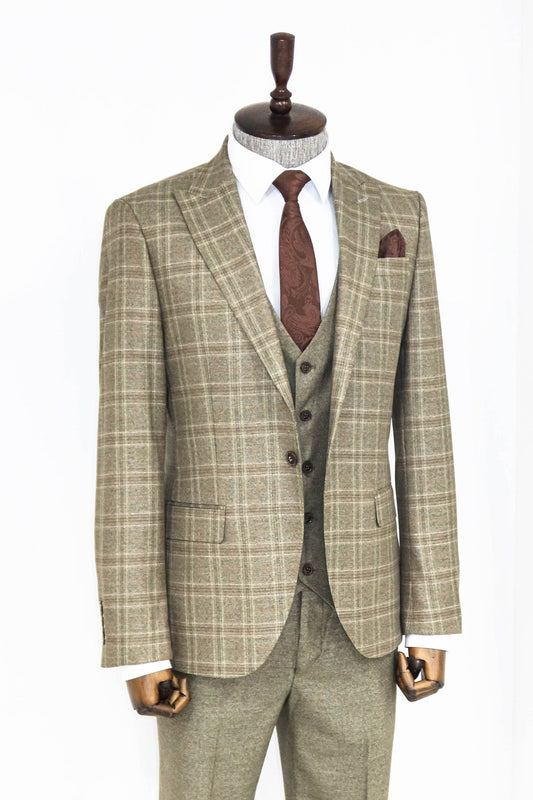 Checked Slim Fit Light Brown Men Suit and Shirt Combination-Regular price $964.99Regular priceUnit price / per-