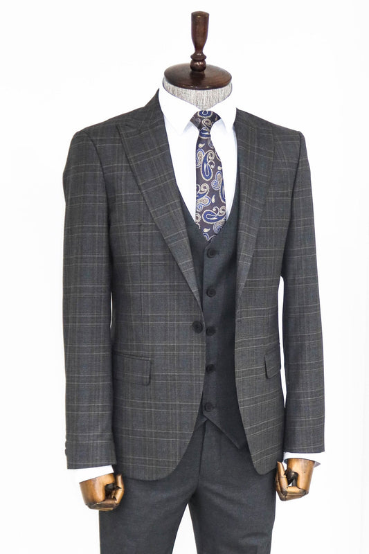 Checked Slim Fit Anthracite Men Suit and Shirt Combination -Regular price $964.99Regular priceUnit price / per-