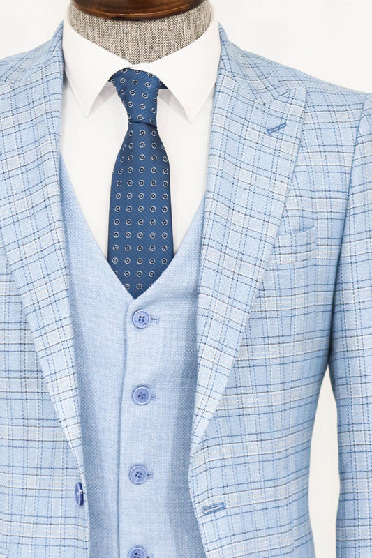 Checked Slim Fit Light Blue Men Suit and Shirt Combination-Regular price $964.99Regular priceUnit price / per-