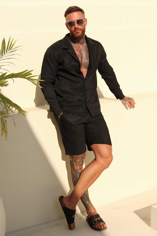 THE SLIM PLEATED SHIRT - NAVY BLUE