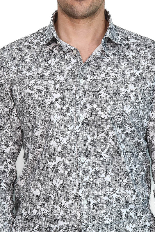 Bloom Patterned Dark Slim Fit Grey Men Shirt