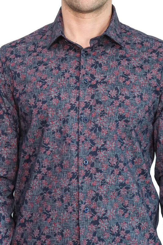 Bloom Patterned Slim Fit Navy Blue Men Shirt