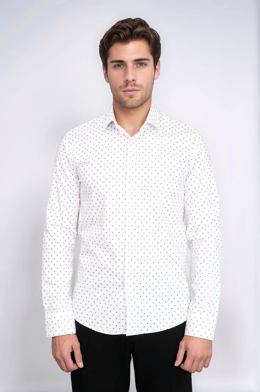 Men’s White Shirt with Minimal Black Pattern – Wessi