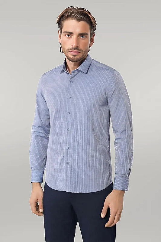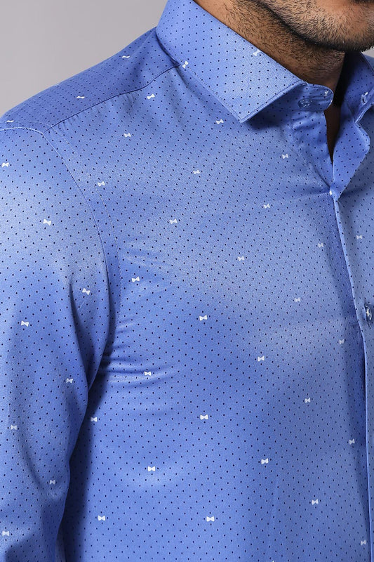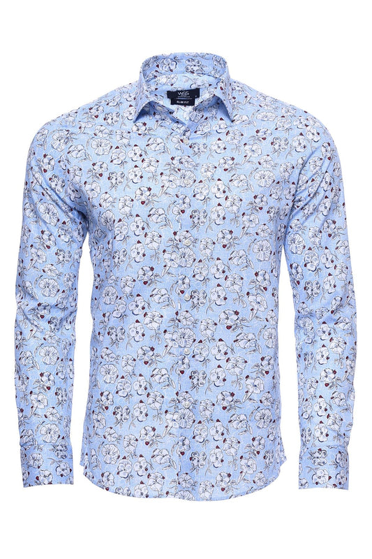 Flower Patterned Long Sleeves Navy Blue Men Shirt