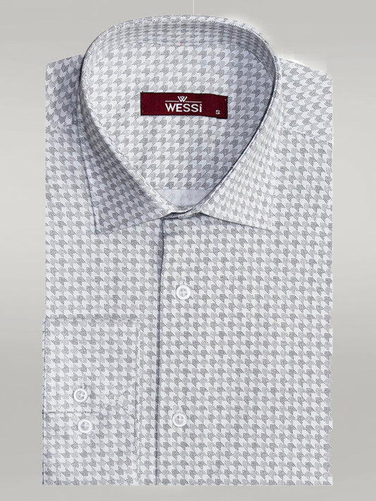 Houndstooth Pattern Slim Fit White Men Shirt -