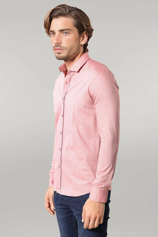 Houndstooth Pattern Slim Fit Ecru Men Shirt -