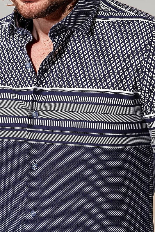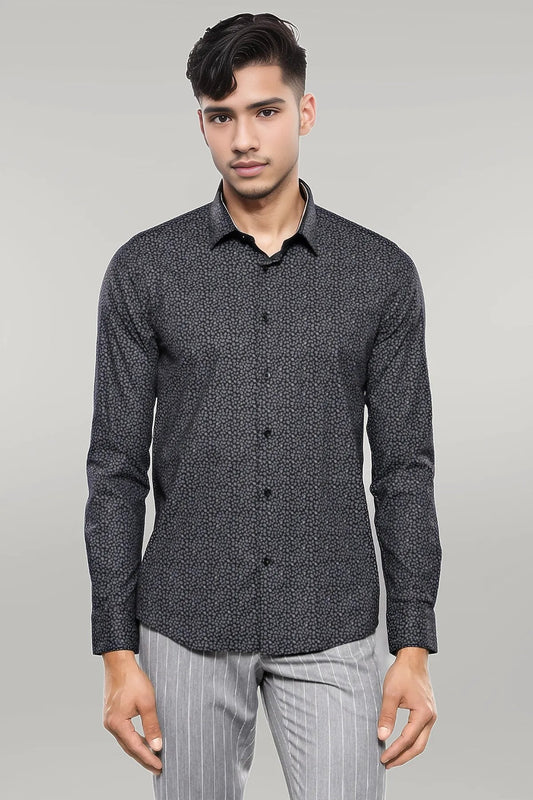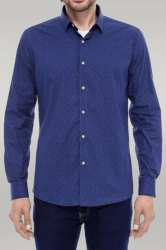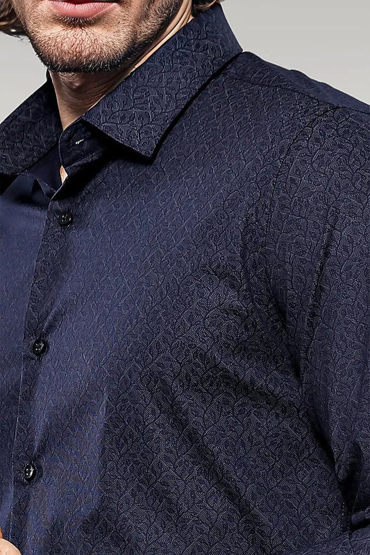 Navy Blue Floral Patterned Slim Fit Shirt -