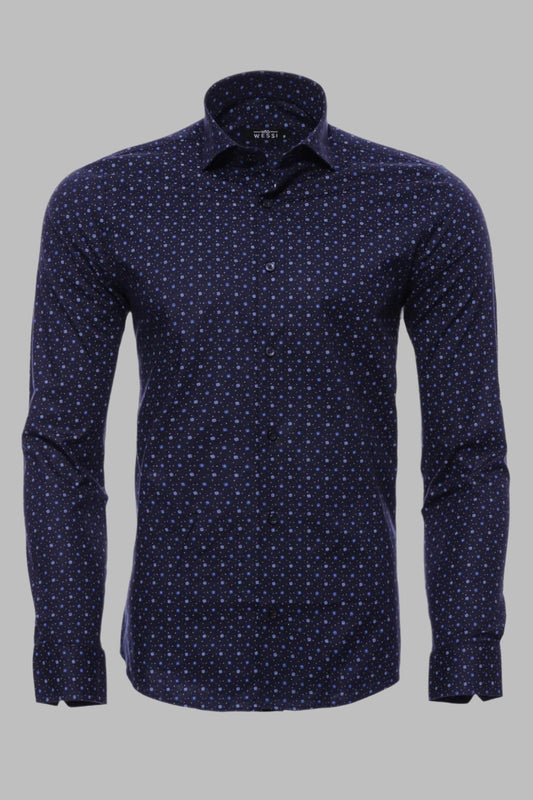 Dot Patterned Long Sleeves Navy Blue Men's Shirt -