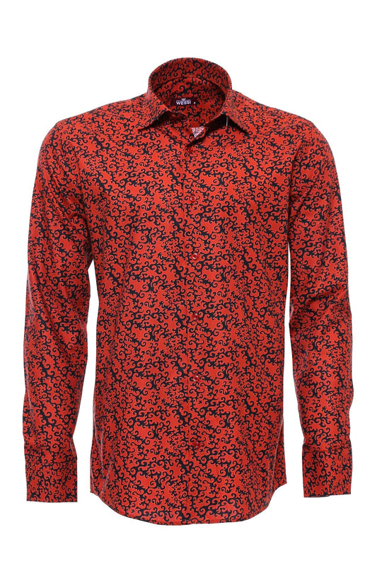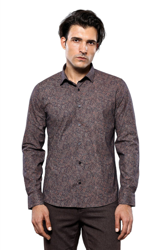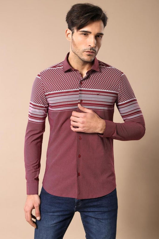 Burgundy Patterned Long Sleeves Slim-Fit Shirt -