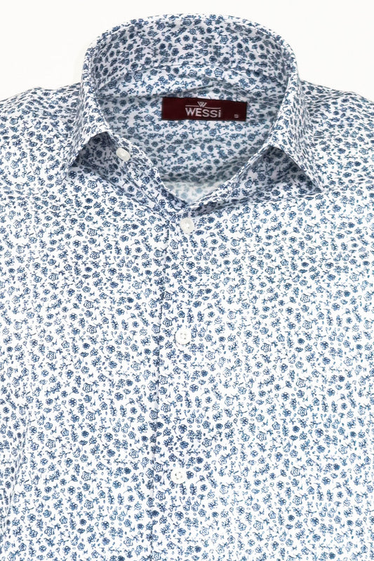 Blue Floral Patterned Slim Fit White Men Shirt -
