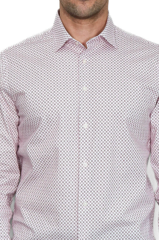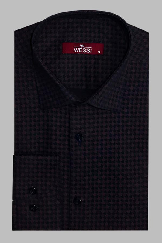 Houndstooth Pattern Slim Fit Burgundy Men Shirt -