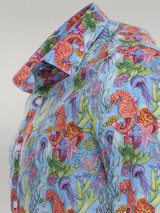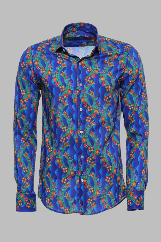 Floral Slim Fit Long Sleeve Indigo Men Shirt