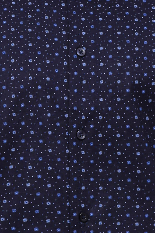 Dot Patterned Long Sleeves Navy Blue Men's Shirt -