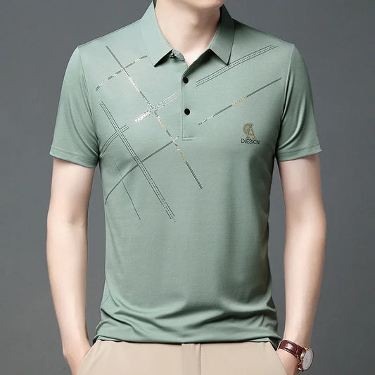 Men’s 3D Stripe Print Zip Polo Shirt & Shorts Set