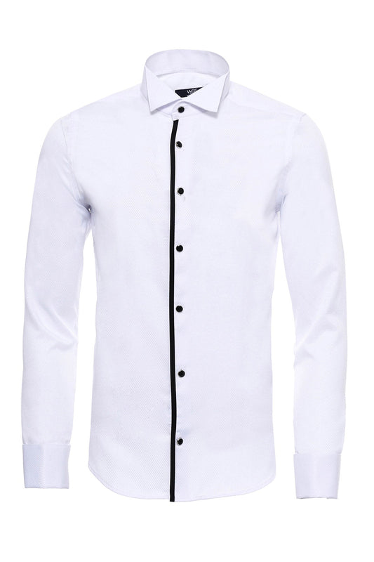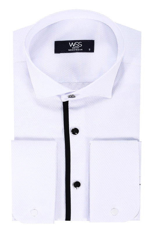 Black Stripe Detailed White Men Tuxedo Shirt -