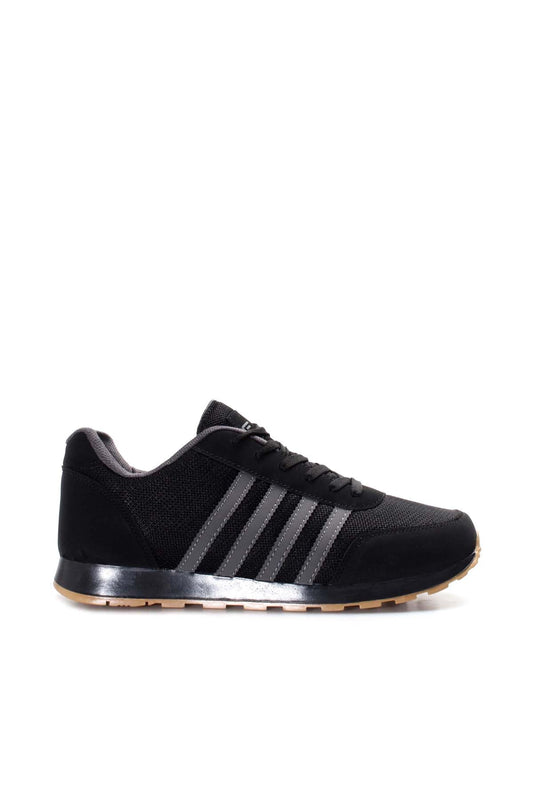 Men's Black Mesh Sneakers with Gray Stripe Accents