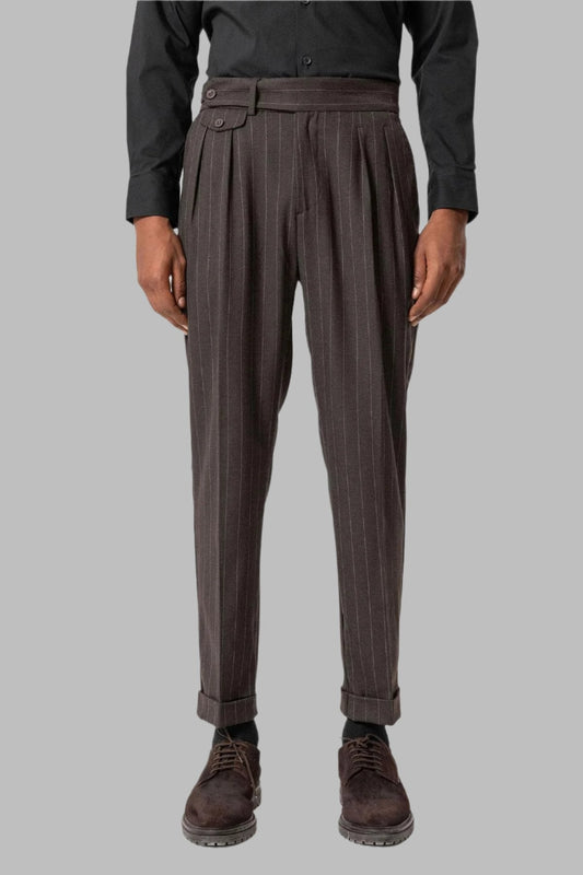 Brown Navy Burgundy Striped Slim-Fit Coat
