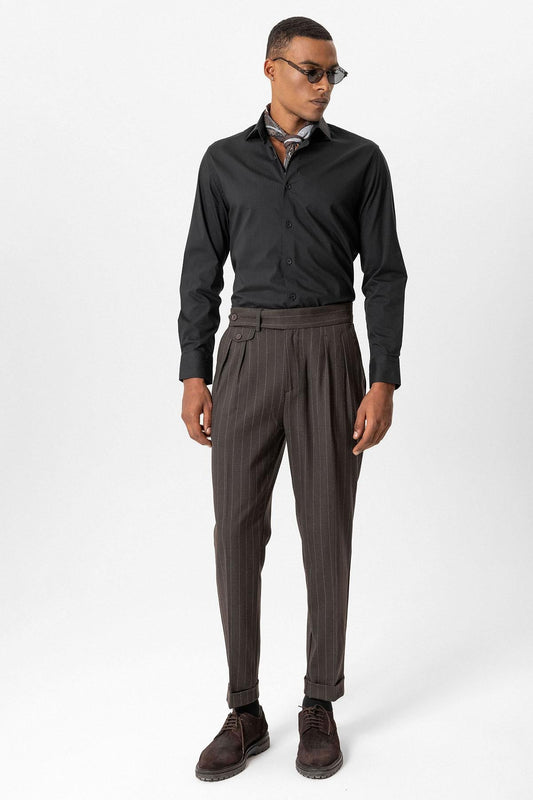 Double Breasted Slim Fit Striped Black Men Blazer and Trousers Combination