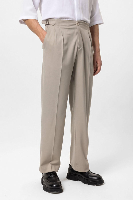 Men's Beige Slim Fit Striped Long Sleeve Shirt -